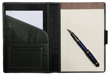 Features: Premium full-grain leather cover. Elastic pen loop. Inside slots and pockets for notes/business cards. A 5" x 8" ivory pad is included.