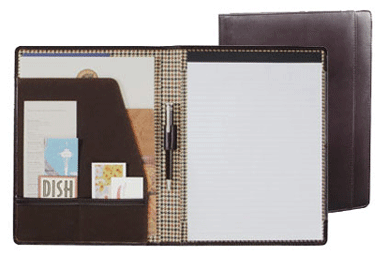 Features: Deep mahogany top grain leather. Great gift for an executive! The interior includes pockets for documents and business cards. Includes 8 1/2" x 11" perforated writing pad. Comes in a gift box.